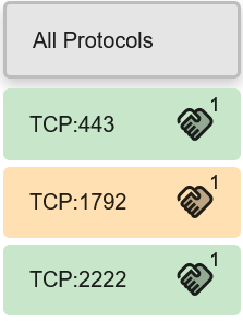 All Protocols tab on the Sidebar, shown on the left, will be selected by default. The other tabs will show colouring based on the security level of the protocol and port combination. The legend for the security level colours is shown in the bottom right of the page, in the footer.
