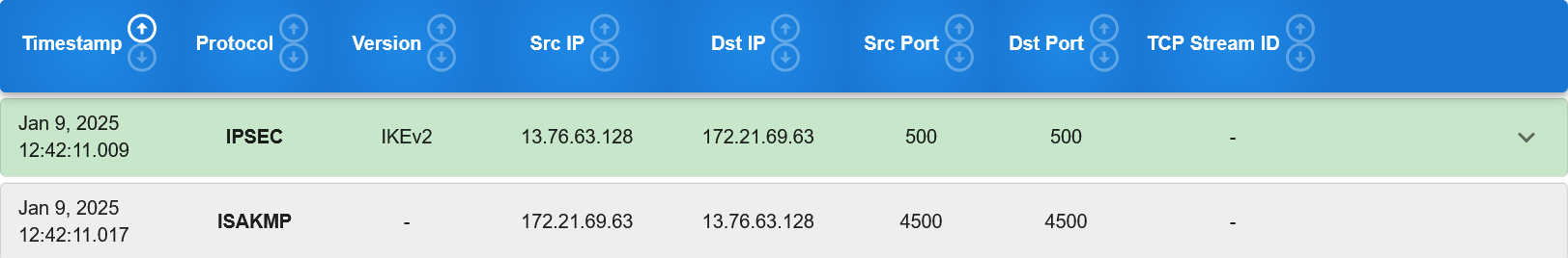 An example of an IPsec IKEv1 detailed view is shown below: